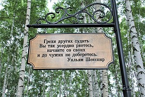 В парке Ханты-Мансийска появились таблички с цитатами великих людей «Грехи других судить вы так усердно рветесь, начните со своих и до чужих не доберетесь»